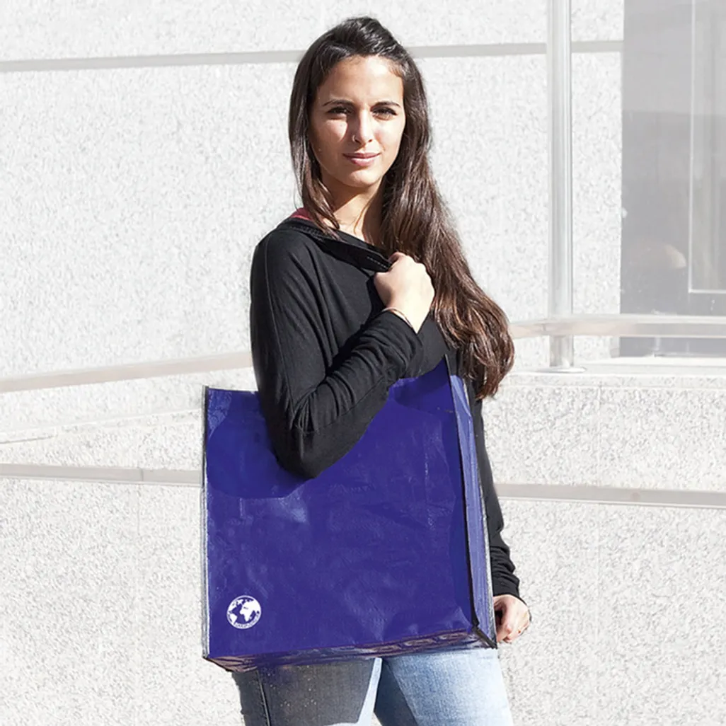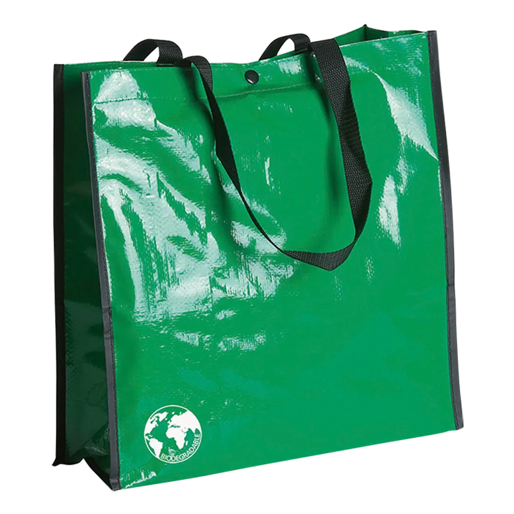 ISO, SMETA, MOQ 50units, Main compartment, Size: 38 x 38 x 12.5cm, Material: Biodegradable, Resistance up to 12kg weight, Long 70cm, reinforced handles in nylon, Reusable bag in resistant laminated material, Gussets reinforced with piping and button closure